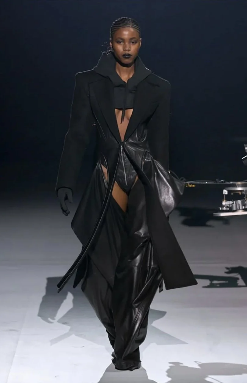 Mugler’s FW23 collection screams Bad Witch, feel free to replace the W with a B. In this collection we see some of the typical trademarks of Cad Waller’s Mugler including illusion mesh, cut-outs and the infamous contouring silhouette made to empower, sexi-fy and Muglerize its wearer.